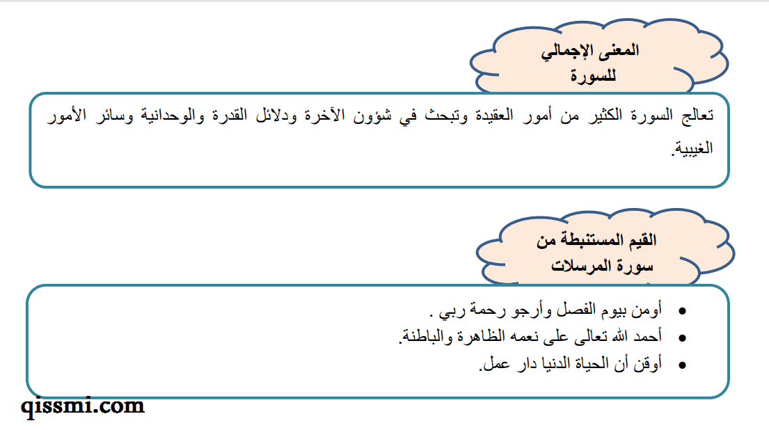 ملخص درس سورة المرسلات للمستوى السادس : المعنى الإجمالي ، الأحكام التجويدية و القيم المستنبطة منها