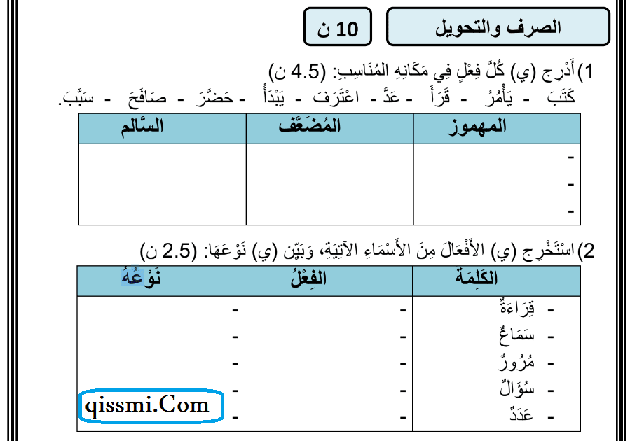 نماذج فروض رقم 1 في اللغة العربية للمستوى السادس ابتدائي على صيغة PDF و وورد في حلة احترافية.